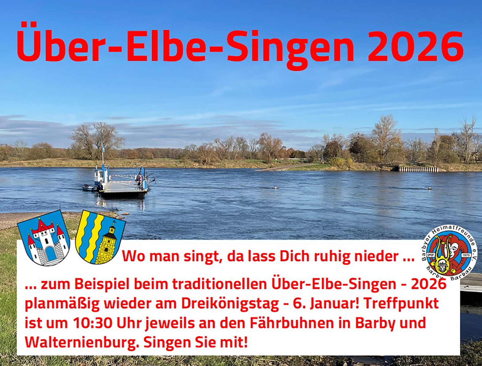 Treffpunkt ist um 10:30 Uhr jeweils an den Fährbuhnen in Barby und Walternienburg.