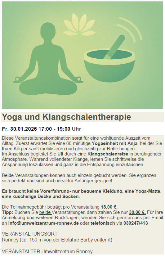 Für Anmeldung und Rückfragen wenden Sie sich gern an das Umweltzentrum Ronney unter info@umweltzentrum-ronney.de oder telefonisch 039247/413.