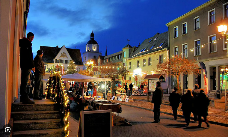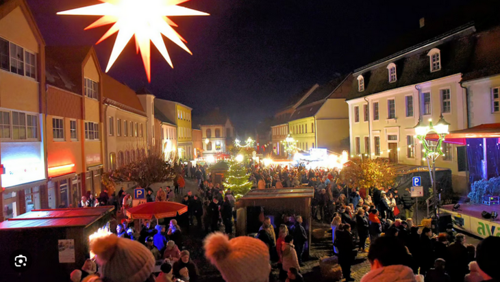 Auf dem stimmungsvoll beleuchteten Marktplatz erwartet Sie ein weihnachtliches Bühnenprogrammn, festlich dekorierte Buden mit winterlichen Köstlichkeiten und Fahrgeschäfte für leuchtende Kinderaugen.
